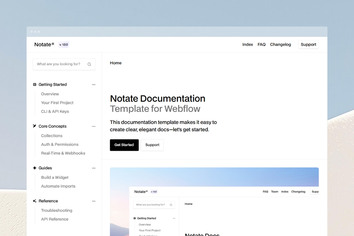 Welcome to Notate, a clean and flexible documentation template for Webflow.